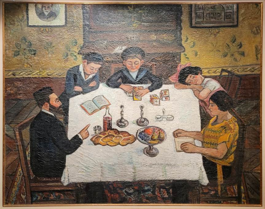 Nathan GRUNSWEIGH, Famille pendant le Shabbat, Huile sur toile, 1923