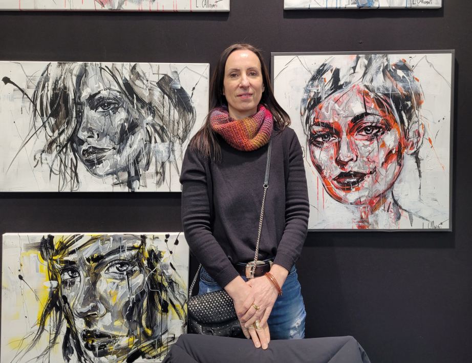 Sébastien ALLART près de ses œuvres sur alu, 30*35,
