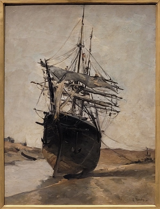 Eugène BOUDIN, Trois-mâts échoué à marée basse, 1875, Huile sur toile