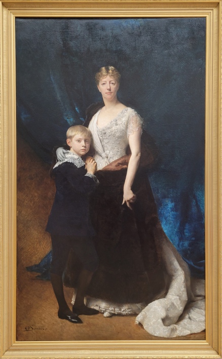 Daniel SAUBÈS, Portrait de madame de Castex et son fils, Vers 1885, Huile sur toile