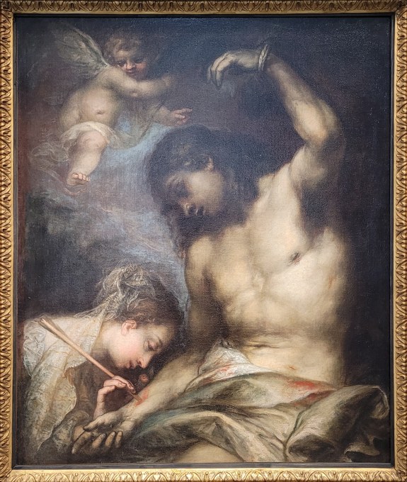 Andrea CELESTI (Venise, 1637-1700), Saint Sébastien soigné par Irène, Non daté, Huile sur toile
