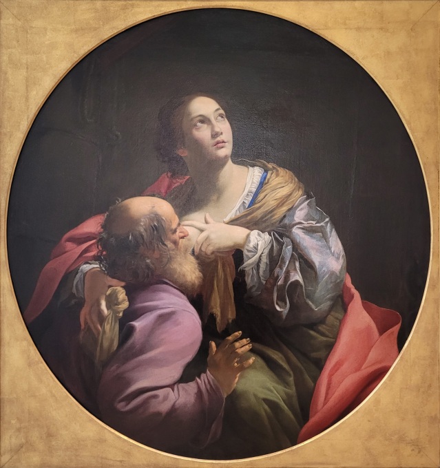 Simon VOUET, La Charité romaine, Vers 1626, Huile sur toile (Condamné à mourir de faim dans son cachot, Cimon reçoit chaque jour la visite de sa fille Pero. Celle-ci vient lui donner le sein pour le nourrir. Émus par cet acte exemplaire, les juges gracient Cimon - une scène connue depuis l'antiquité sur la "piété filiale")