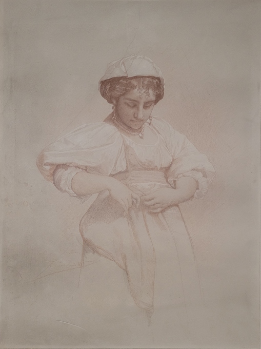 Félix-Henri GIACOMOTTI (1828-1909), Portrait d'italienne, Non daté, Crayon sanguine deux tons, rehauts de blanc obtenus par grattage, sur papier préparé