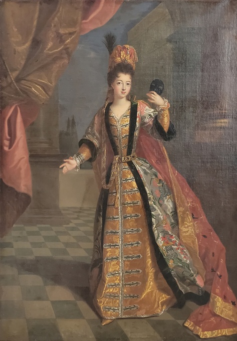 Pierre GOBERT, Portrait d'une duchesse se rendant au bal à Versailles, portrait présumé de la duchesse de Guiche née Noailles, ou de la duchesse de Bourgogne, née Savoie, 1698, Huile sur toile